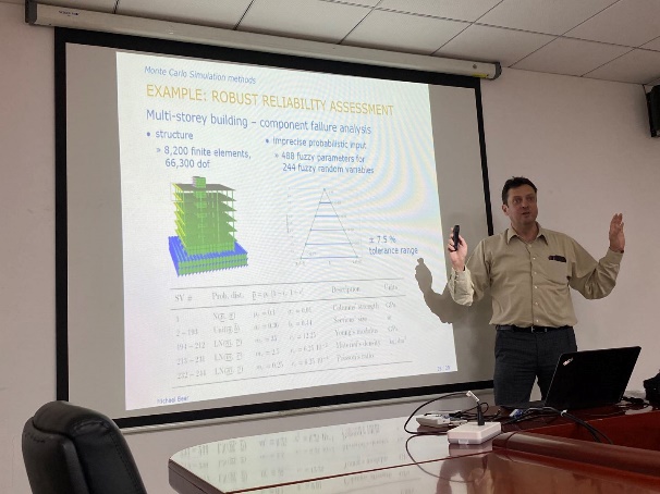 此次报告中,Michael Beer教授,从一个宏观的角度,进行了不确定分析这一学科的综述汇报。主要讲解了不确定分析的学科内容、在工程领域的应用和未来的发展方向,让在场的师生们对不确定分析有了一个更加深入的了解。