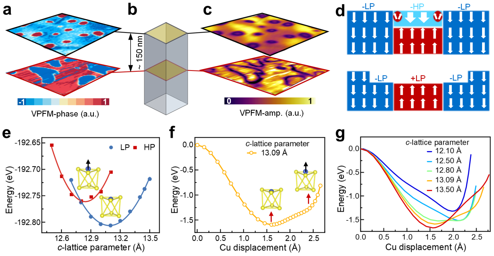 1. CIPS晶体具有典型的层状范德华结构,Cu离子可在层内和层间范德华隙中移动,形成低极化(LP)和高极化(HP)两种共存相。